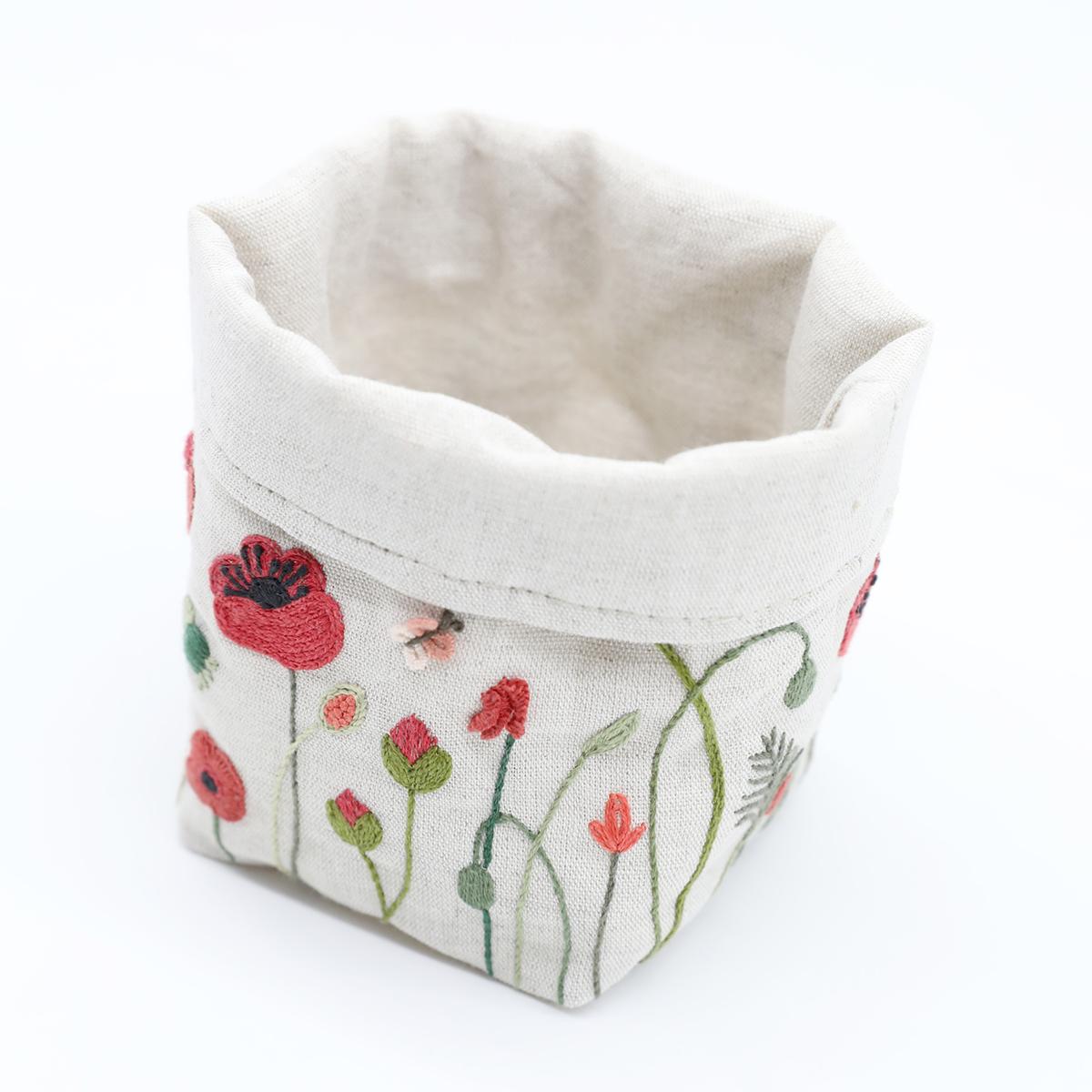 Brodez cette délicate corbeille Coquelicots, idéale pour ranger vos chutes de fils, bijoux, lingettes, stylos ou petits accessoires du quotidien. À la fois utile et décorative, elle apportera une touche végétale et poétique à votre intérieur ou à votre coin créatif.