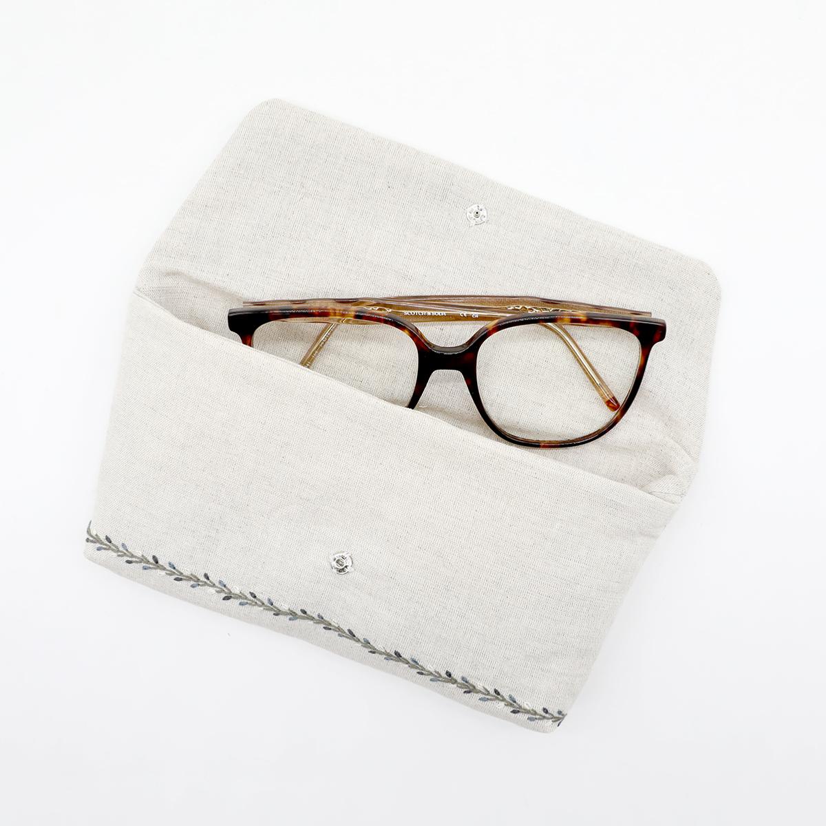 Une pochette délicate, idéale pour protéger vos lunettes ou pour offrir un cadeau fait main, plein de charme.